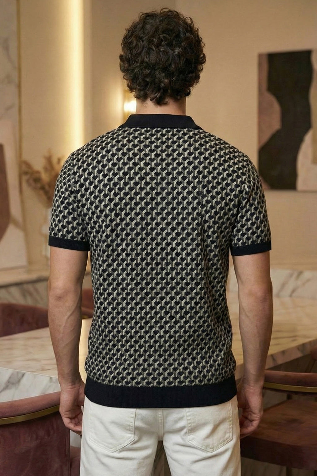 Black Jacquard Textured Regular Fit Exclusive Polo T-Shirt