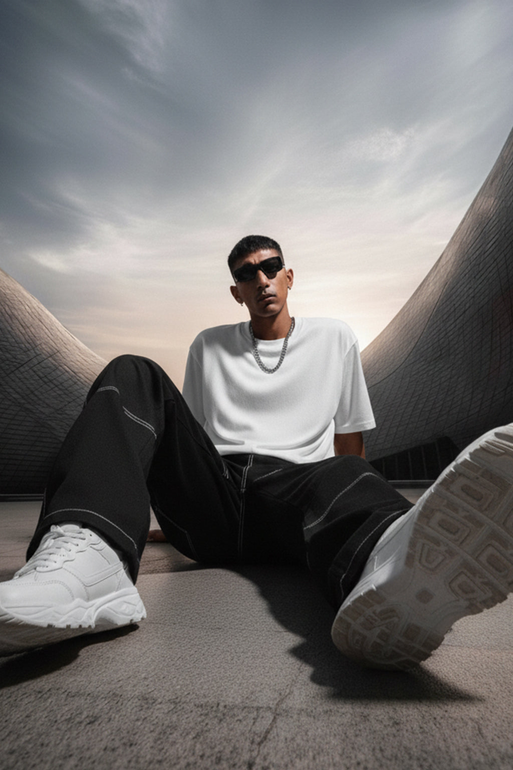 Black Pure Woven Straight Fit 5 Pocket Cargo