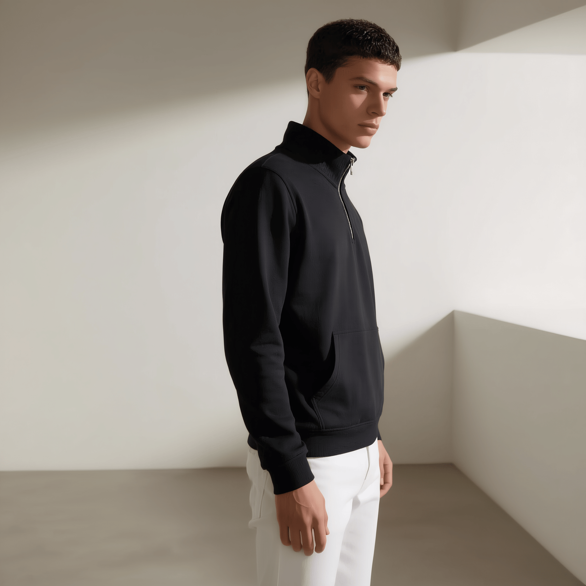 Step up your look with this black half-zip fleece jacket - built to keep you warm, comfy, and sharp. Crafted from high-quality fleece fabric so it feels smooth and snug against the skin. It’s got a clean front zipper that goes halfway up, giving off a laid-back but put-together vibe. Simple lines, no clutter - perfect when you’re out running errands or hitting the road. Use it during gym sessions, weekend trips, or just throw it on when the air gets crisp. One solid choice if you want something good-looking that also works hard every day.