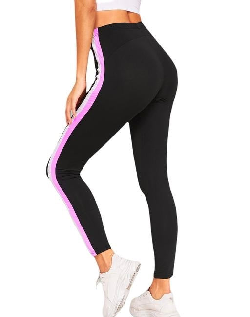 Premium Navy Blue Jeggings with sporty double White stripes. Perfect for gym and casual wear.
